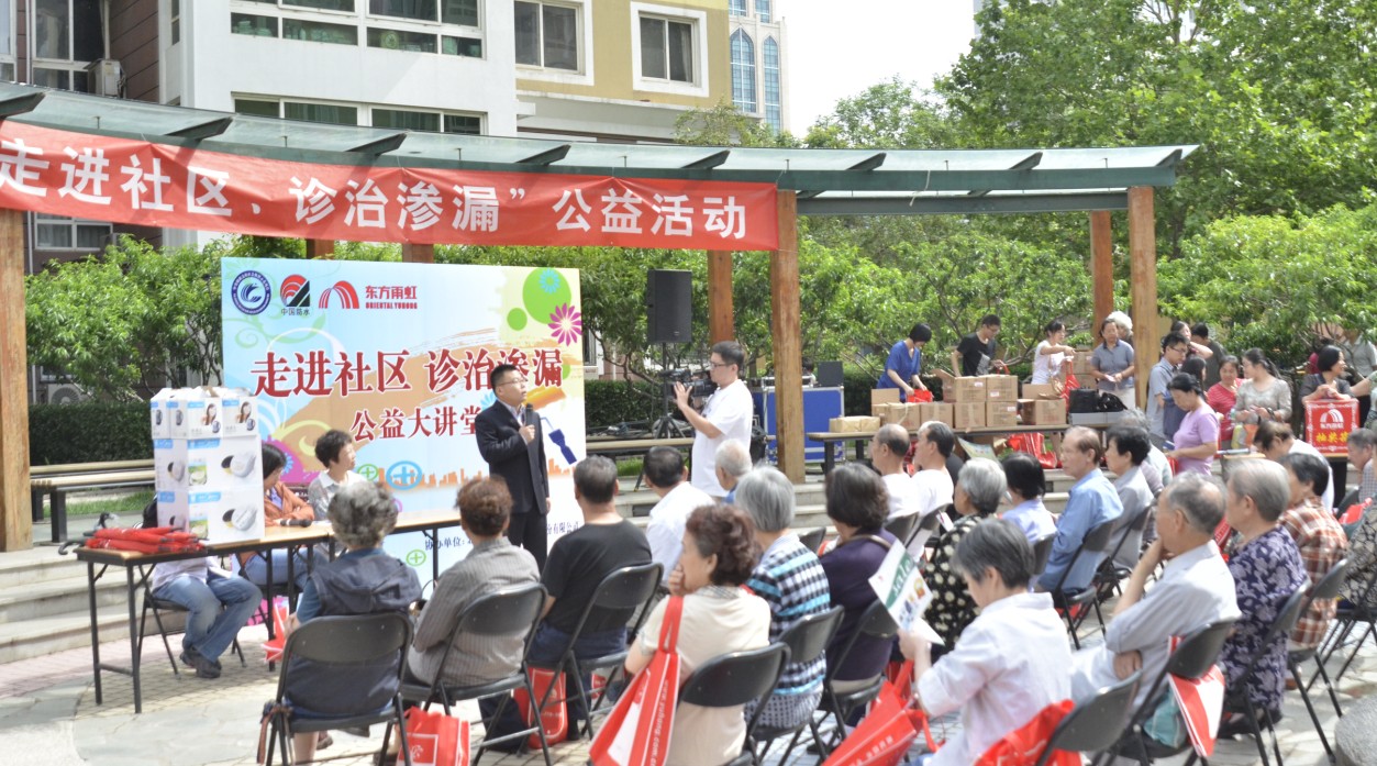 公益活动的协办单位北京东方雨虹股份有限公司现场派发诊治申报表,安排人员上门为居民勘察渗漏部位,并提出解决方案。