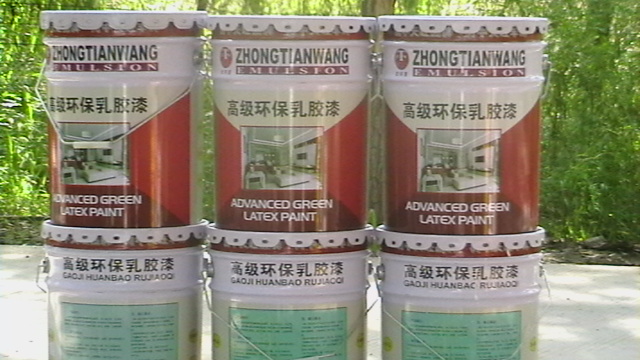 高级环保乳胶漆 (环保型) 一、产品简介:本产品是由多种丙烯酸单体为原料,加入乳化剂、引发剂、稳定剂等,经过聚合反应而制成乳液。然后加入主要成膜物质、填填料、颜料等其它助剂,经过分散、混合、研磨、过滤而得。 二、本产品特点: 1.具有较强的附着力。尤其对建筑墙壁、金属、塑料等附着力更好。 2.本产品是以水作溶剂,安全、环保、无毒,无火灾危险性。 3.耐水性较好,漆膜耐刷洗,光泽柔和,保光性、保色性优异,而且有较好的遮盖力。 4.本产品耐久性、耐候性较好,不易脱落,估计可达5年以上。 三、适用范围:本产品适应于民用住宅、公共建筑、金属、塑料等涂装。 四、施工条件、要求及注意事项: 1. 涂料施工环境应清洁干净,基层坚实平整、无脱皮、无起砂、无尘土、无潮湿等。 2. 涂料施工应在抹灰工程、地面图饰应在墙面、顶棚等装饰工程完工后进行。 3. 一般涂料施工环境温度不得低于5℃,相对湿度不宜大于60%;室外还应注意气候变化,如遇大风、阴雨、雾雪、风沙等天气不宜施工。 4. 涂料涂刷前物件必须干燥。木基层时,含水率不宜大于12%;混凝土、抹灰面基层含水率不宜大于8%;金属表面不得有湿气。 5. 根据设计要求,确定涂料工程等级和所需材料,并根据现行材料标准,对材料进行选择和检查验收。 五、施工要点: 1.施工前必须对产品进行充分搅拌,以免有沉淀现象,涂料粘度要有专人负责调配,不得任意稀释,以确保施工时不流坠,不显刷纹。 2.选择带颜色的产品时,施工前,要对施工工程量进行核实,一般同一工程或物件,好要选用同一品种、同一批号的涂料,以免造成色度误差。 3.本产品采用刷、滚、喷等方法均可. 4.涂刷面积参考用量:平面施工用量一般3-5㎡∕㎏
