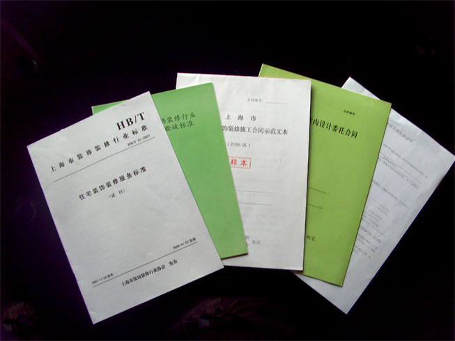 我们使用上海装饰装修行业协会规定的标准设计合同和施工合同,执行行业规范文件。